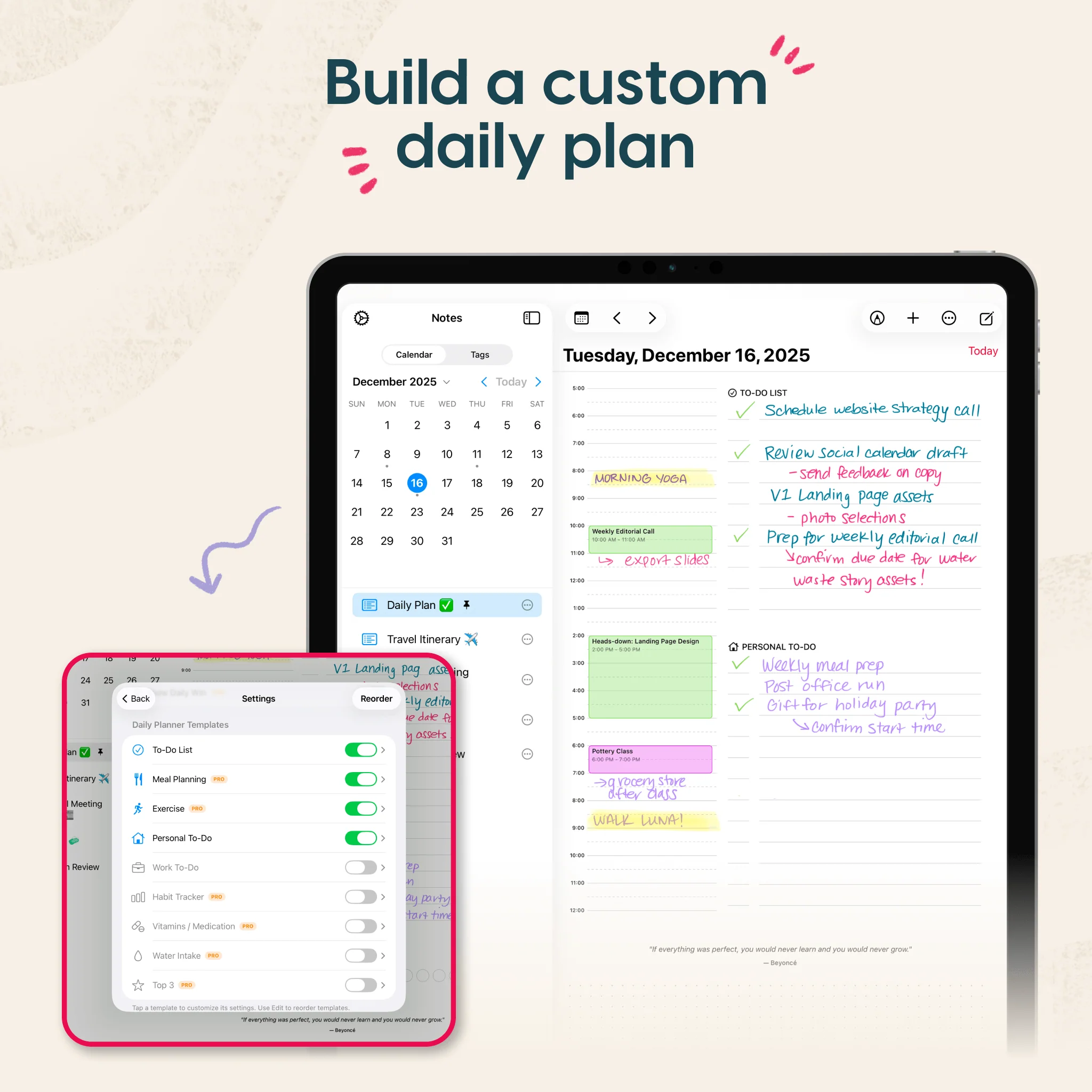 Rock Daily Planner is designed around this concept and provides a clean, writing-first layout. Use your Apple Pencil to write naturally and give your ideas room to breathe.